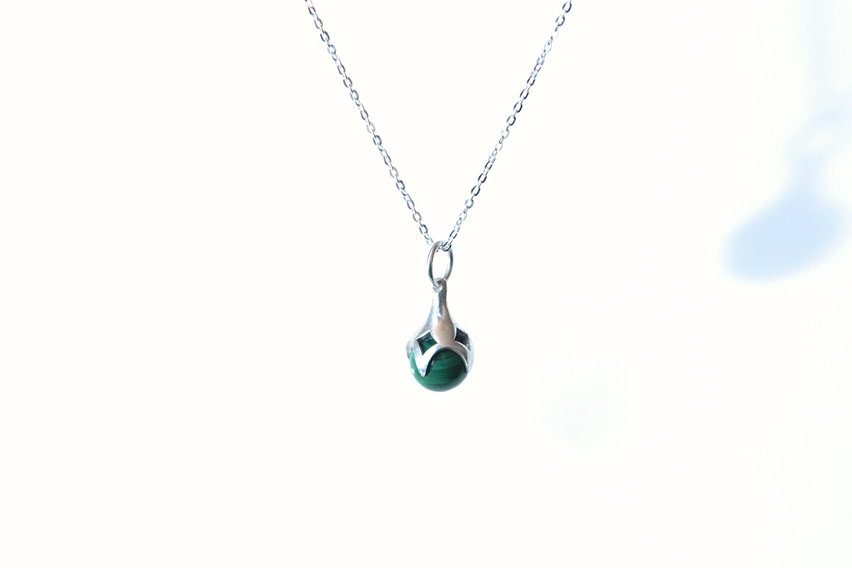 As if something has dropped down from the sky above to collect a tiny orb, the four claws of the pendant hold, but also flaunt, it’s previous bounty. A beautifully silver pendant mimicking a bird’s claw clutching a gemstone bead of your choice.