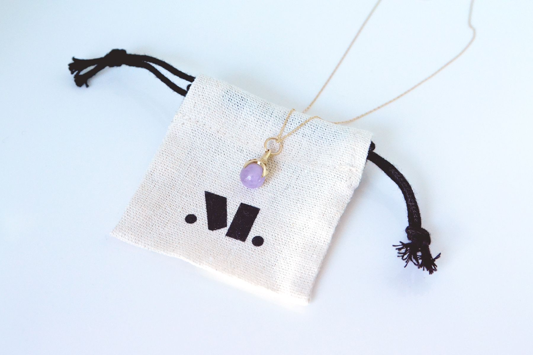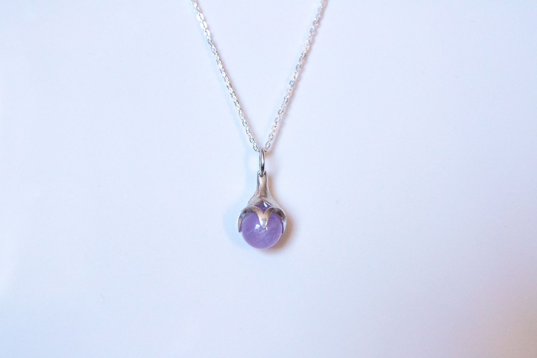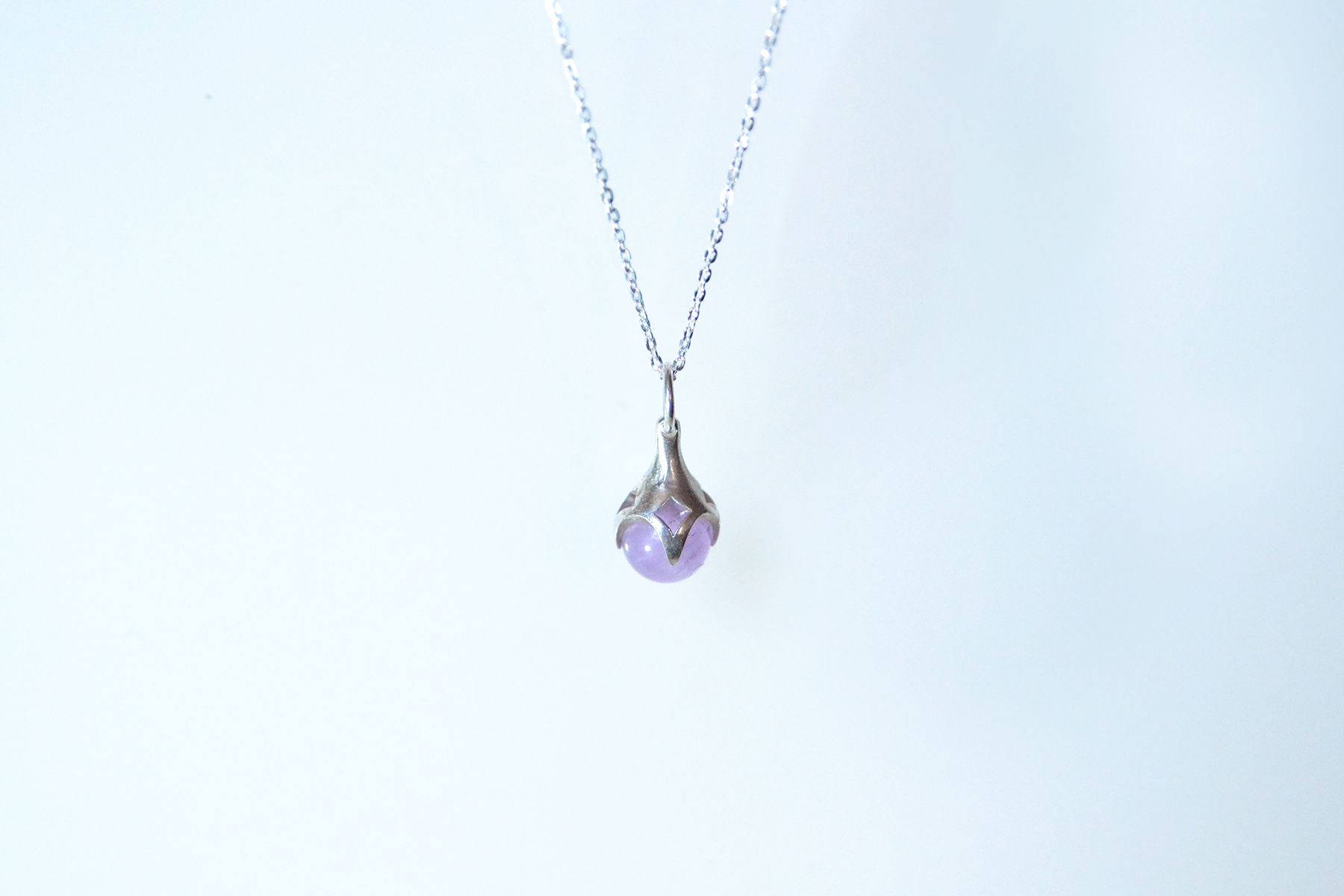 As if something has dropped down from the sky above to collect a tiny orb, the four claws of the pendant hold, but also flaunt, it’s previous bounty. A beautiful pendant mimicking a bird’s claw clutching an Amethyst gemstone bead.