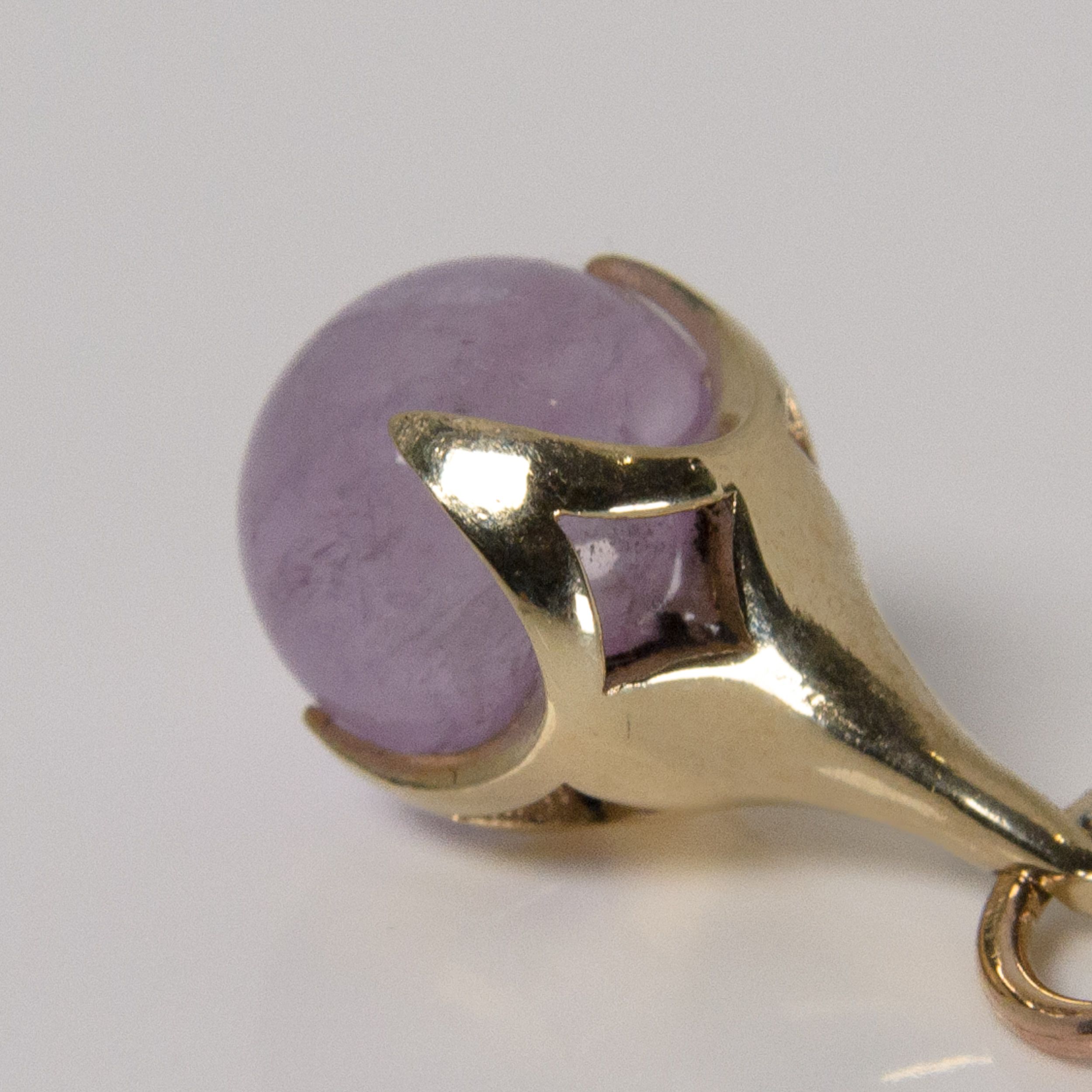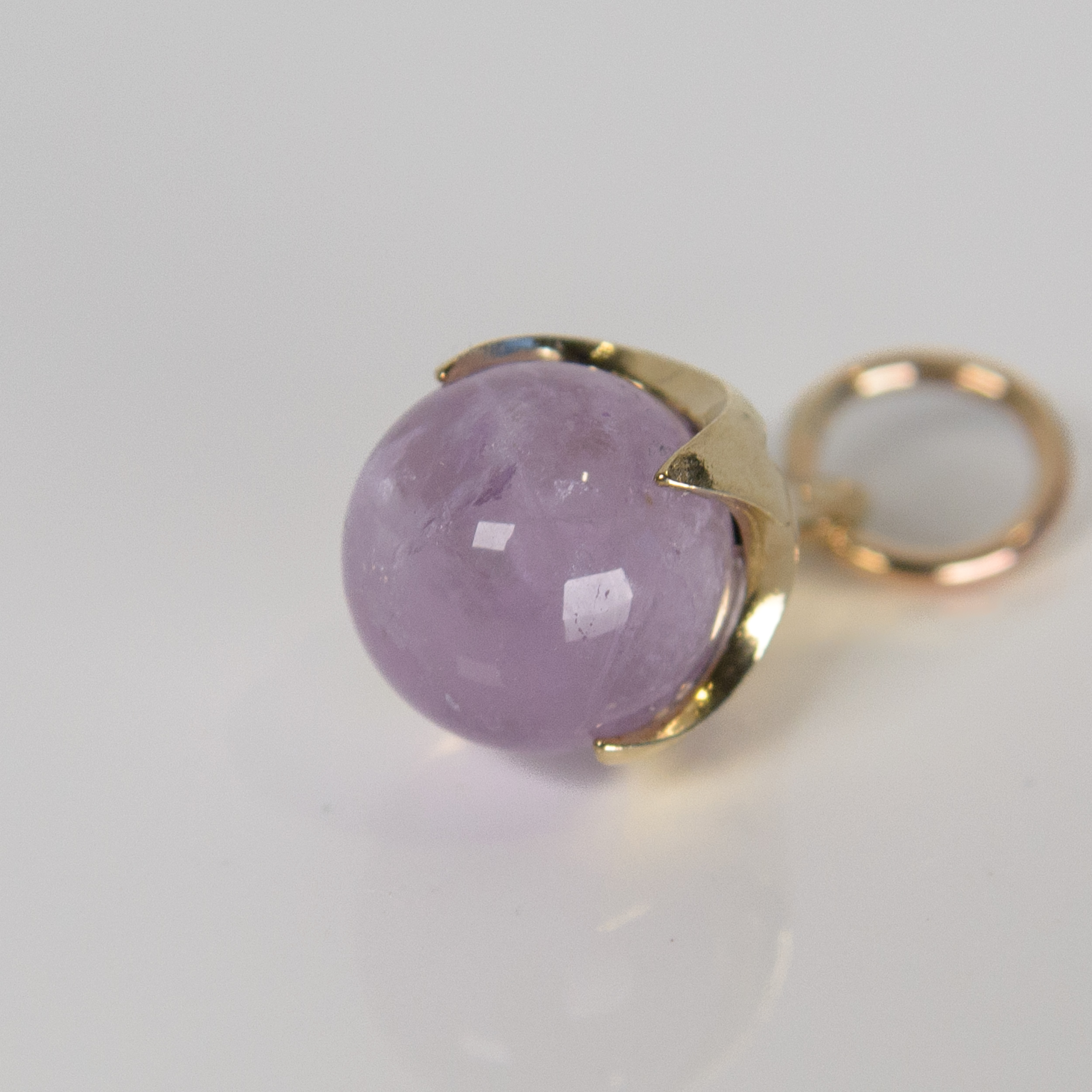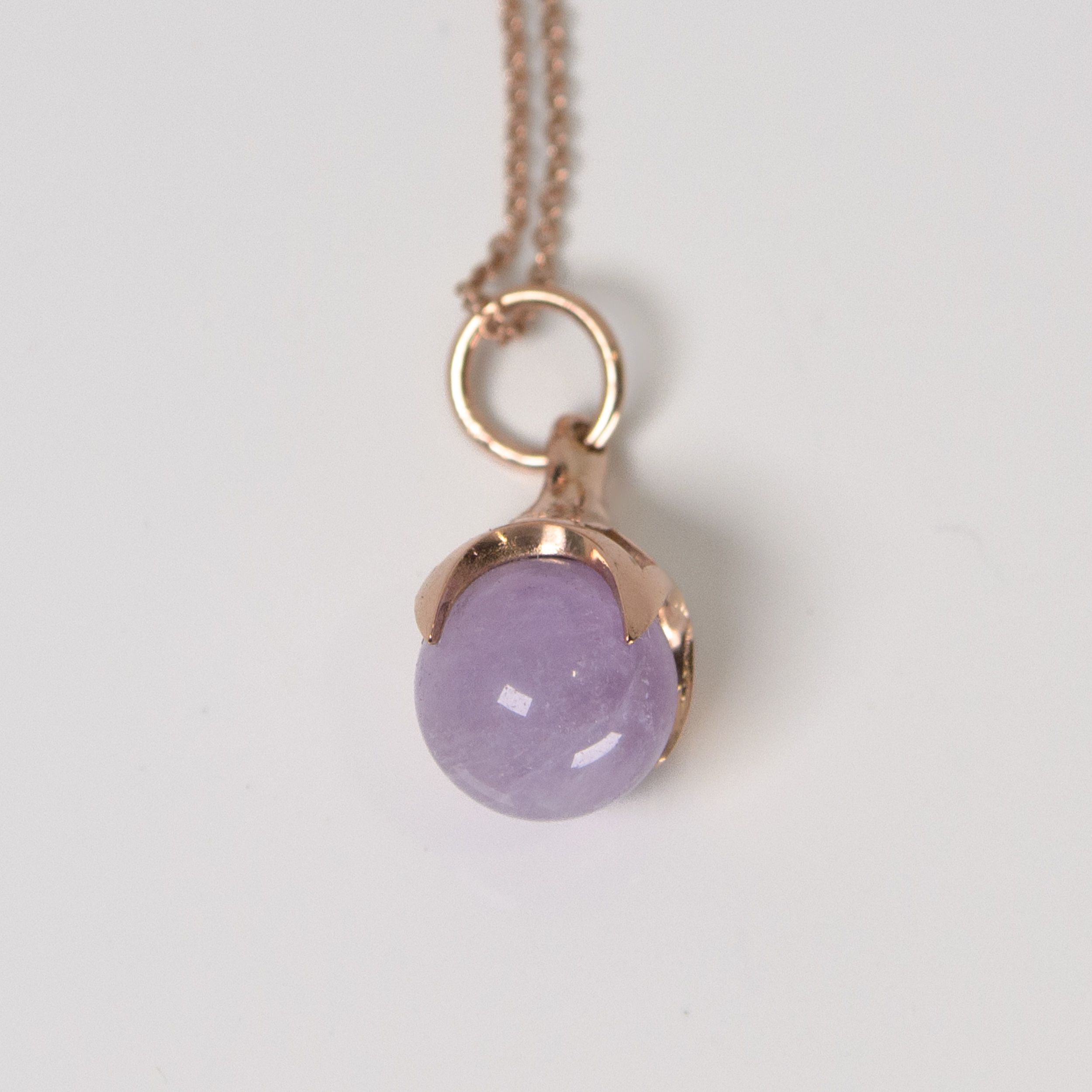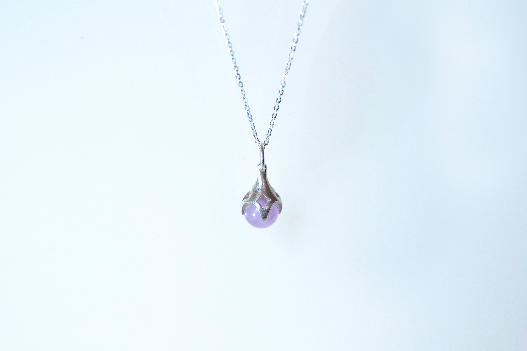 As if something has dropped down from the sky above to collect a tiny orb, the four claws of the pendant hold, but also flaunt, it’s previous bounty. A beautiful pendant mimicking a bird’s claw clutching an Amethyst gemstone bead.