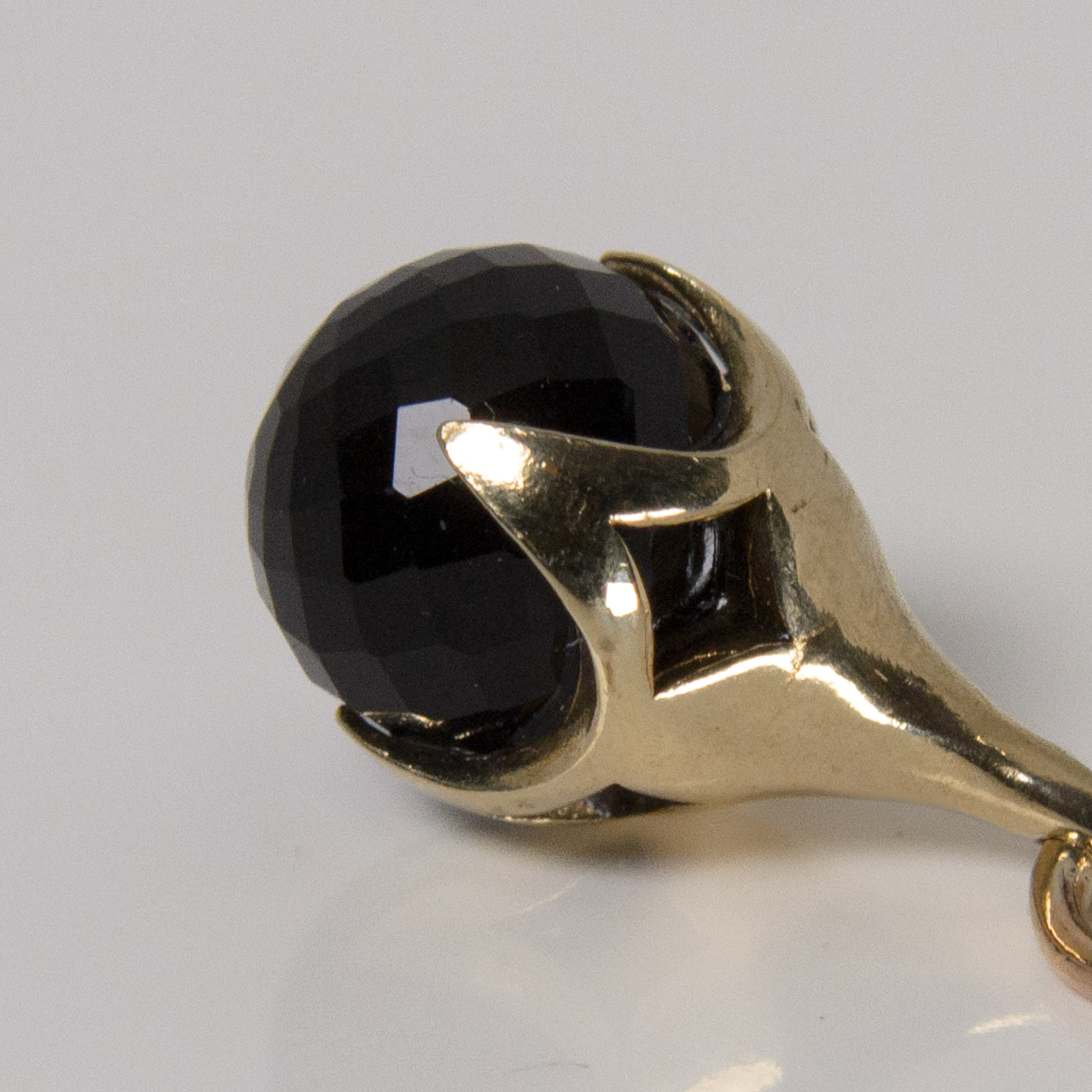 As if something has dropped down from the sky above to collect a tiny orb, the four claws of the pendant hold, but also flaunt, it’s previous bounty. A beautiful pendant mimicking a bird’s claw clutching an Onyx gemstone bead.