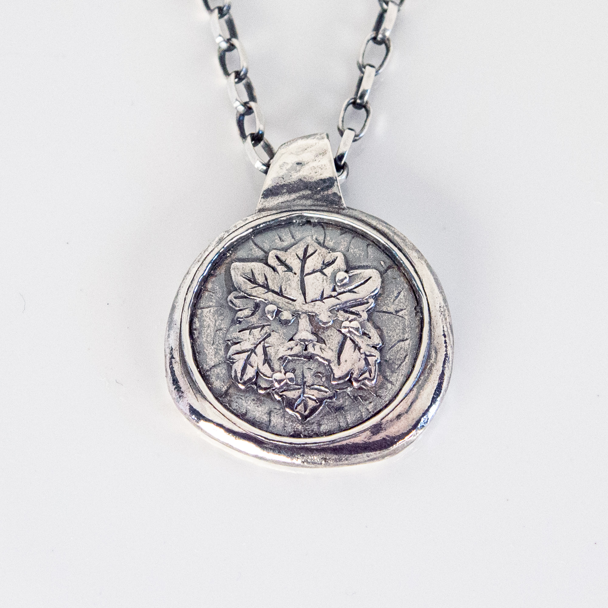 • Solid sterling silver Green Man pendant