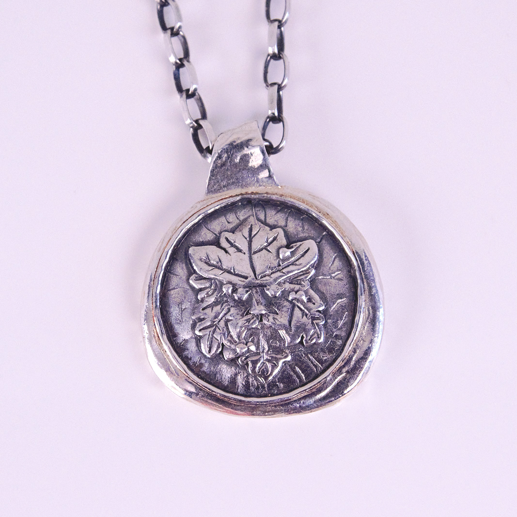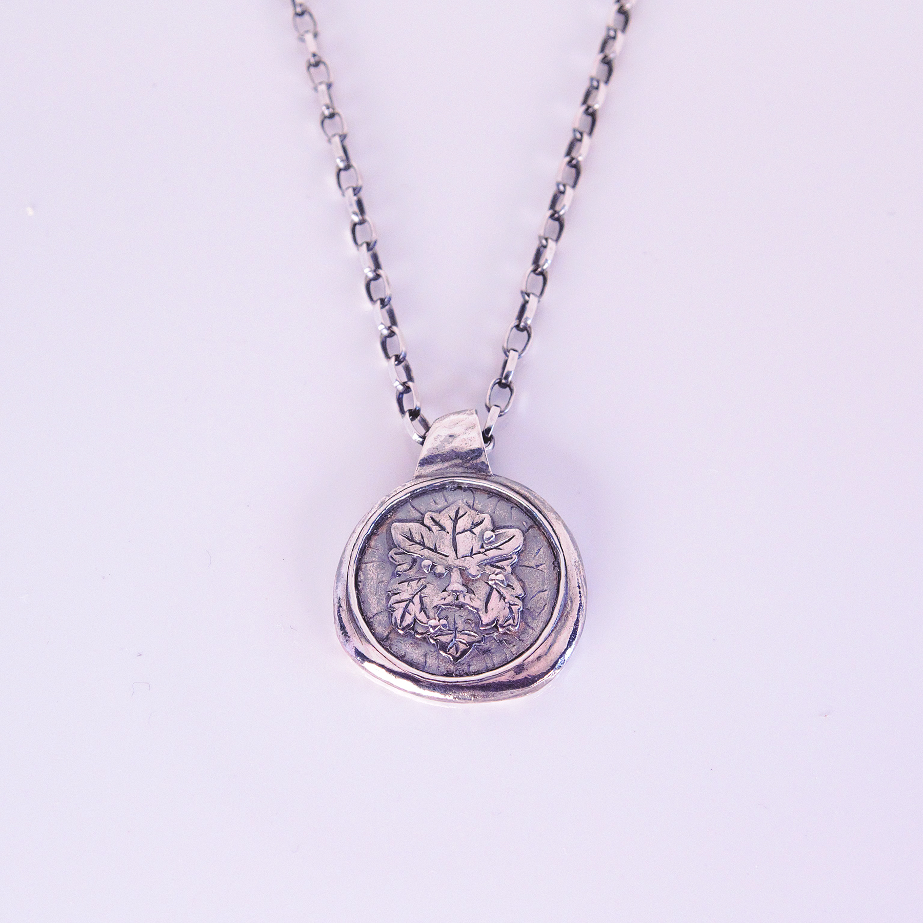 Green Man – Silver Pendant 20″