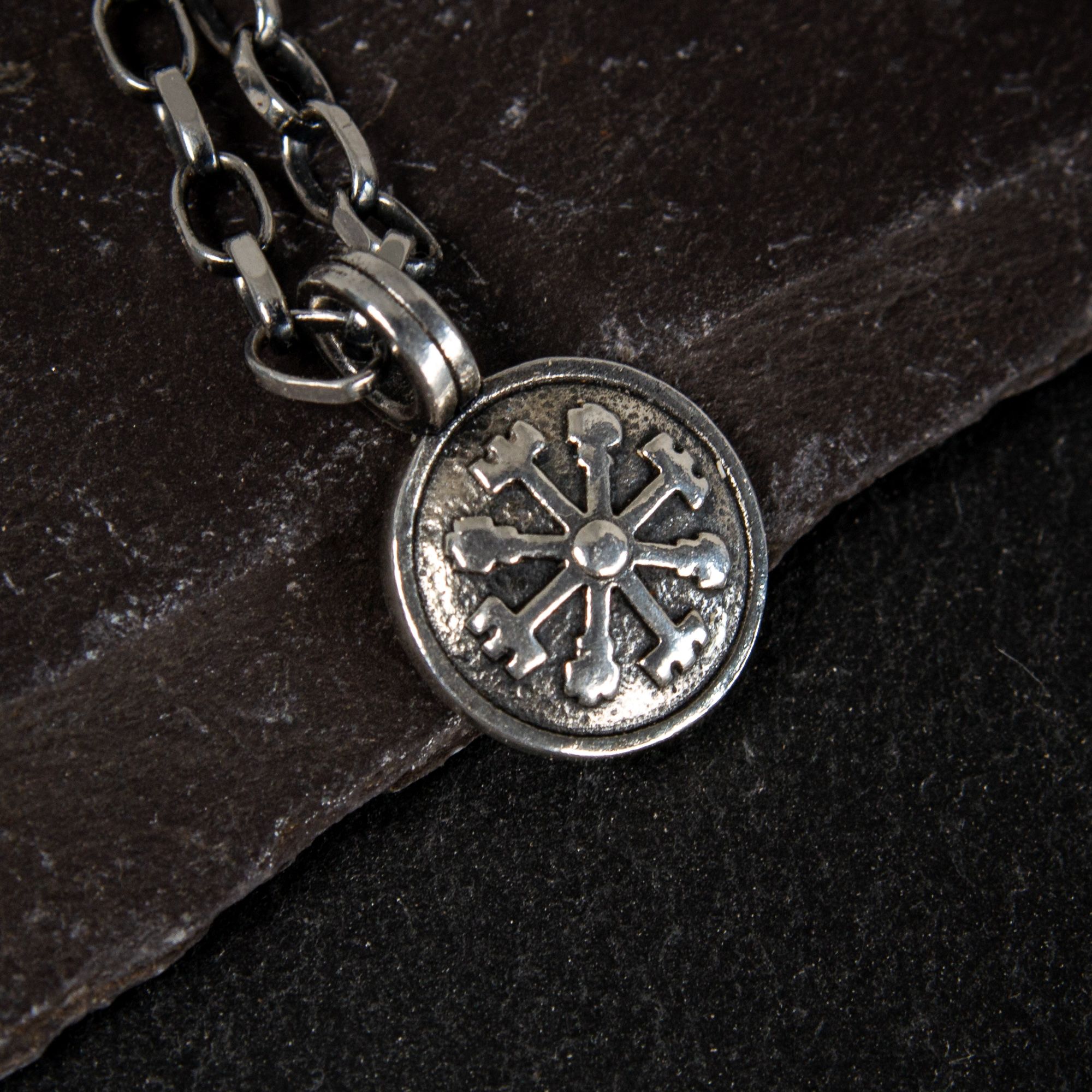 • Sterling silver Vegvisir charm necklace with hidden stone set on the reverse